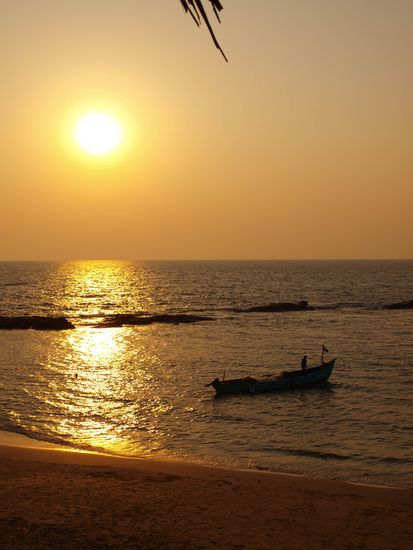 Gut 4 Stunden bis Dehli und dann nochmal 2 1/2 mit dem Flieger. Daoblim, Goa empfängt mich mit 36 Grad und Kokospalmen überall. NNoch eine Stunde bis Anjuna und dort empfängt mich ein strahlend sauberes Zimmer. Trotzdem wird der Tierchencheck gemacht. Such und suche, kann aber wirklich nix finden. Bin totmüde mittlerweile, aber den Strand will ich noch sehen. Sind auch nur ein paar Minuten durch einen kleinen Waldweg und so stehe ich pünktlich zum Sonnenuntergang mit meinen Füßen im Meer. Um mich herum nur weißer Strand, Kokospalmen und kleine Bambushütten. Auf einmal lacht das Leben mich wieder an Es ist echt wahnsinn wie verschieden und vielseitig dieses Land ist.
