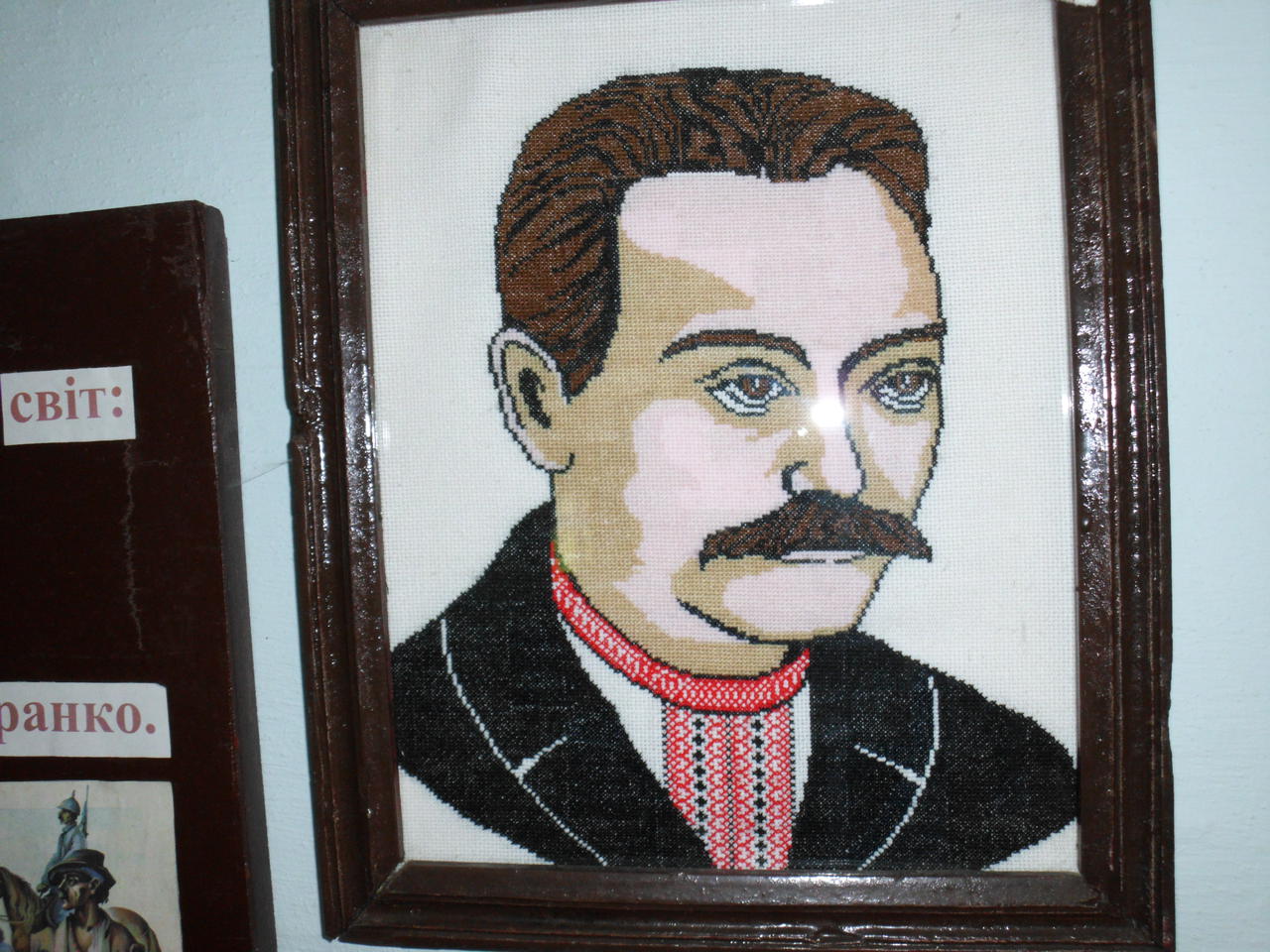 Die Wände der Schule sind bestückt mit gestickten Bildern, die im Handarbeitsunterricht hergestellt wurden.