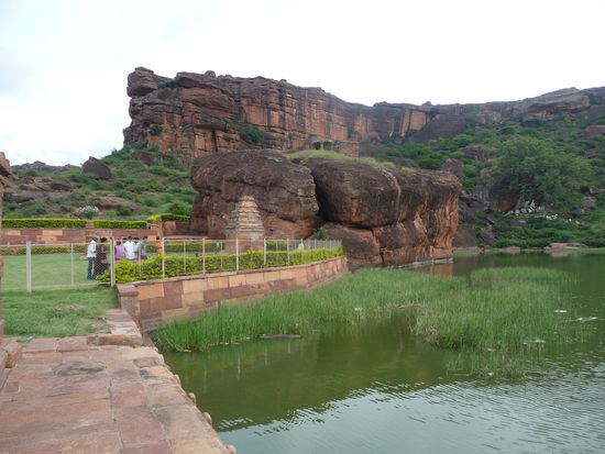Tag 10: Nach dem ich die Fahrt gestern gut überstanden habe und die Nacht in einen guten Hotel am Stadtrand verbracht habe steht heute die Besichtigung von Badami auf dem Programm und der Rest des Tages ist frei. Die Stadt liegt im nördlichen Karnataka und hat ca. 25000 Einwohner. Den Agastya See ließ der Herrscher der Chaulukya Dynastie König Pulakeshin I. erbauen und verlegte seine Hauptstadt 543 nach Badami. Zur führenden Regionalmacht in Zentralindien wurde das Chalukya Reich  unter Pulakeshin II. ( 610 - 642 ) . Aus dieser Zeit kann man auch heute noch eine ganze Reihe interessanter Tempel besuchen.