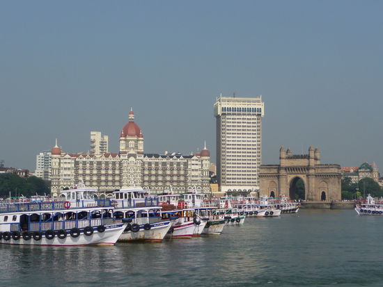 Nach dem ich die letzten Tage dazu genutzt habe mir Mumbai anzusehen geht es heute an Tag 4 für mich mit den Boot zu den ca. 10 Km entfernten Elephanta Inseln.Sie gehören zu den wichtigsten Sehenswürdigkeiten der Stadt und sind ein beliebtes Ausflugziel der Mumbaier Bevölkerung.Der Ausgangspunkt dafür ist das berühmte Gateway of India eines wenn nicht das Wahrzeichen der Stadt. Gleich daneben steht das nicht weniger bekannte renomierteste Hotel Indiens das Taj Mahal Interkontinental. Das Ticket für die Bootsfahrt Hin und zurück kostet 130 Rupie und berechtigt mich dazu auf den Oberdeck Platz zu nehmen. Unterdeck kostet 100 Rupie.Wenn ich gewußt hätte das unser Boot kein Sonnendach auf den Oberdeck hat so wie die meisten Boote währe ich lieber unten geblieben da es schon sehr heiß war da oben . Die Überfahrt dauerte etwas über eine Stunde .