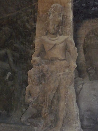 Nach etwas über einer Stunde Fährfahrt erreichte ich die Insel Elephanta. Den Namen erhielt die Insel durch die Portugiesen die dort im 16. Jh. landeten und in einem Dorf einen riesigen Elephanten aus Stein vorfanden.In den folgenden Jahren wurde die Insel mit Ihren Höhlen u.a. als Schießanlage genutzt wodurch es große Zerstörungen gab. 1774 übernahmen die Engländer die Insel und erst 1890 wurde mit ersten Restaurierungsarbeiten begonnen.Ihre Anfänge hatte die Insel bereits im 2. Jh. und wurde in den folgenden 1000 Jahren von der Vakataka,Kalachuri,Mauryas und der Chalukylas Dynastie beherscht.Die 6 im 7. Jh. erbauten Höhlentempel dienten in erster Linie der Verehrung Shivas. Sehenswert ist heute aber nur noch die Haupthöhle - der Mahesha Felstempel. Seit 1987 gehören die Elephanta Höhlen zum UNESCO WELTKULTURERBE.