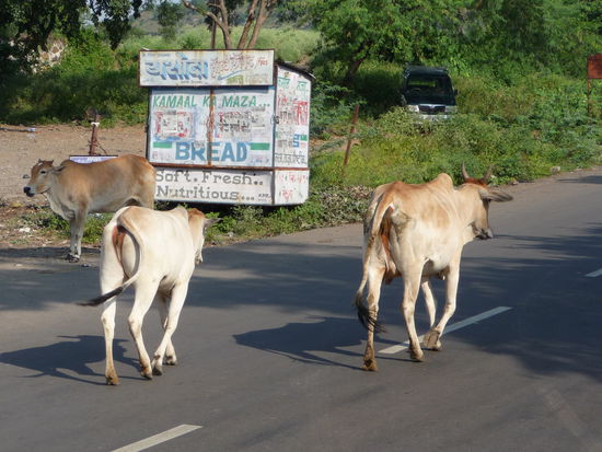 Kühe,Ochsen,Scharfe,Ziegen und Hunde auf den Straßen begegneten mir in Indien besonders außerhalb der größeren Städte sehr oft.