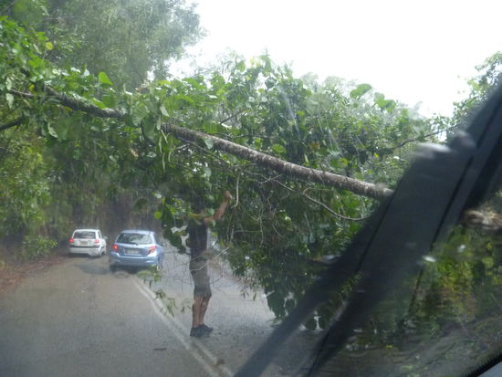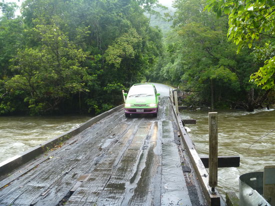 So auch wir und 3 Jungs aus unserem Hostel, denen langsam auch die Decke auf den Kopf fiel. Über den Daintree-River ging es mit der Fähre Richtung Cape Tribulation, wo der Urwald direkt auf das Meer trifft. Überall am Wegesrand Krokodilwarnungen und im Meer schwimmen geht nicht wegen der Quallensaison. Wanderungen durch den Dschungel waren aber problemlos möglich und der Regenwald machte seinem Namen alle Ehre. Jan marschierte in Badehose und alle anderen waren bis auf die Haut nass. Außer einer dicken Spinne, die hier überall in den Bäumen hängen und völlig ungefährlich sind, trafen wir allerdings auf kein wildes Tier.