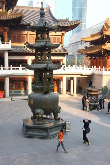Anfahrt: Mit der Metro. Direkt Jing'an tempel station aussteigen, Exit 1, Treppe hoch, links, da. 30 Kuai Eintritt und vorbei mit der Ruhe. Viel Beton, viele Touristen, viele Buddhastatuen, fast alles modernisiert aber dennoch sehr sehenswert. Noch mehr sehenswert aber noch voller ist im Übrigen der Jade-Buddha Tempel. Aber den kennen wir schon. Von damals.