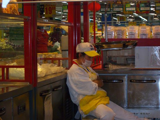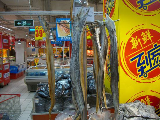 Na gut, Faxen beiseite. Haben ja schon viel probiert, aber das muss es wirklich nicht sein. Den Spruch, dass die Chinesen alles essen, was vier Beine hat (außer Tische) und alles was fliegen kann (außer Flugzeuge) kann ich bestätigen. Und bis zu einem bestimmten Punkt auch damit leben. Uncool wird es, wenn bedrohte Tierarten aufgefressen werden oder wenn man miterleben muss, wie die Viecher geschlachtet werden. Gegen Hundegerichte ist nichts einzuwenden (der Normalsterbliche braucht auch keine Angst zu haben, eines untergejubelt zu bekommen, dass Fleisch gilt als Delikatesse und ist sauteuer) jedoch die Art des Tötens ist fürchterlich (sie werden aufgehängt und durchgeprügelt damit das Adrenalin das durch den Körper strömt das Fleisch schön zart macht) und schon sind wir wieder zurück beim Thema "Respekt vor dem Leben"....leider sehr eingeschränkt im gelben Ländle.