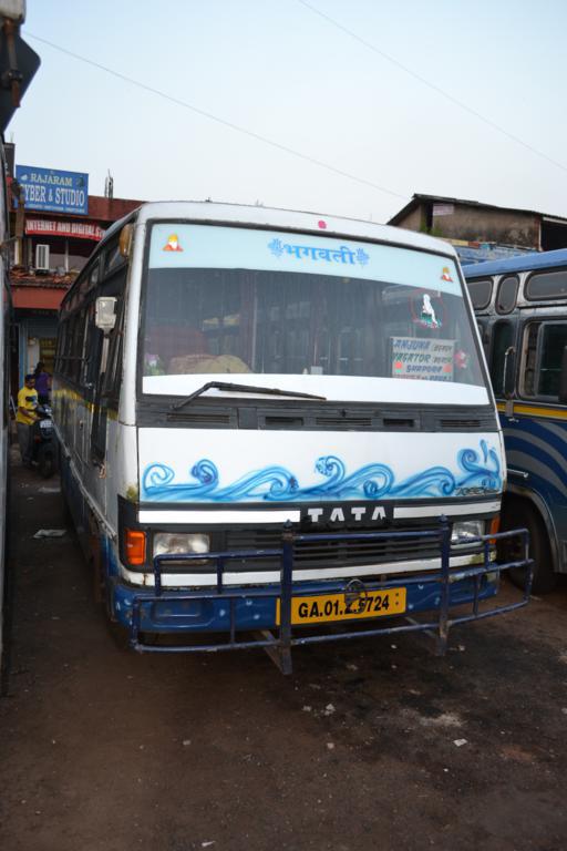 "Chickenbus" von Anjuna nach Mapusa. Ich habe 72 Passagiere (inkl. mir) jedoch nur 41 Sitzplaetze gezaehlt. Der Bus war bloedsinnig ueberfuellt.