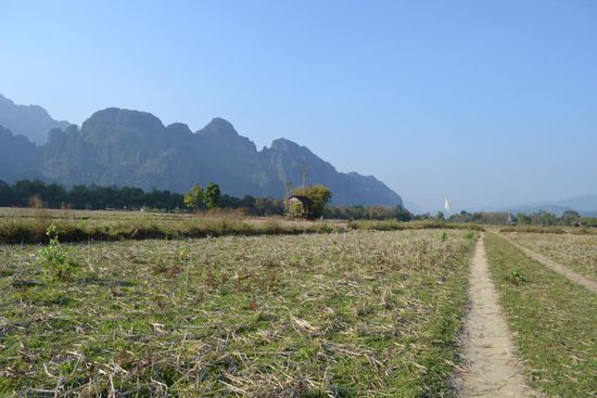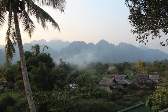 Nach drei Tagen in Hanoi gings weiter nach Laos, wo wir in der Hauptstadt Vientiane starteten und uns von dort über Vang Vieng, Luang Prabang und Pak Ben nach Huay Xai durchkämpften. Durchkämpfen ist nicht übertrieben. Man kommt in Laos einfach nicht vom Fleck. Für eine Strecke von 200km muss man mit dem Bus schon mal mit 8 bis 10 Stunden Fahrtzeit rechnen.