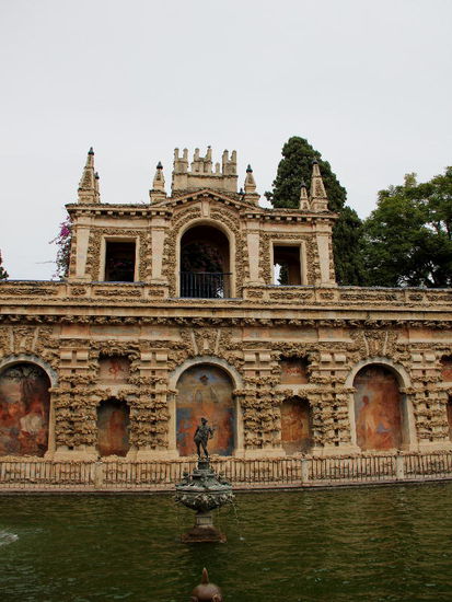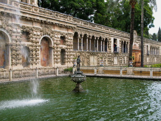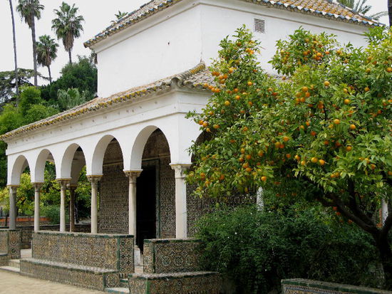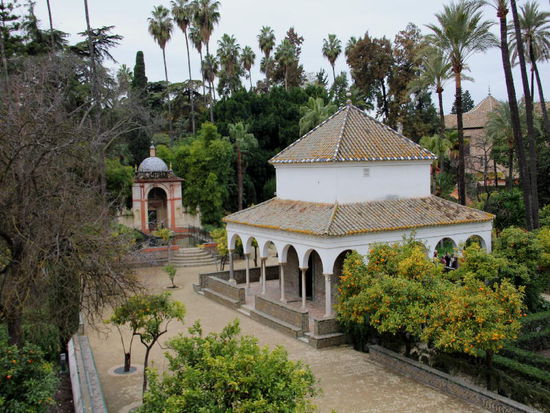 Die Gärten des Alcázar sind durch eine Grotte in zwei Hälften geteilt und enthalten unterirdische Badeanlagen sowie den Pabellón de Carlos V aus dem Jahre 1540...