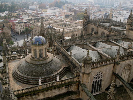 An der Nordseite erhebt sich die Giralda (=Wetterfahne), das 97 m hohe und weithin sichtbare Wahrzeichen Sevillas. Der Turm wurde als Minarett der maurischen Hauptmoschee von 1184 bis 1196 auf römischen Sockeln errichtet. Im Jahre 1568 setzte man eine Glockenstube auf, deren Spitze die 4 m hohe Windfahne, den Giraldillo trägt.