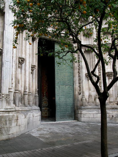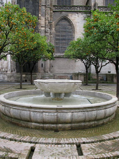 Der Patio de los Naranjos (Orangehof) war der Hof der Moschee. Der achteckige Brunnen in der Mitte ist der Rest der islamischen Midhà, des Brunnens für religiöse Waschungen.