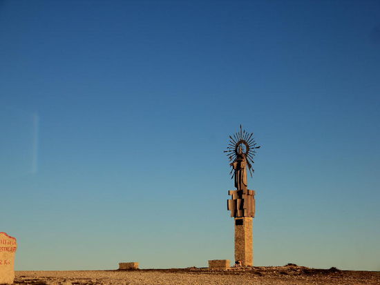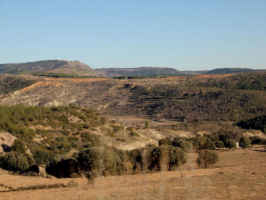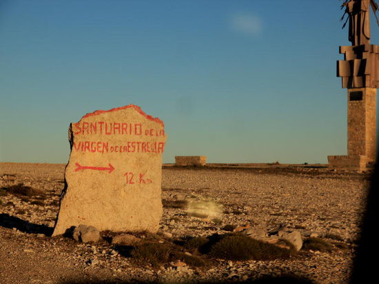 Die Strasse führt steil hinauf und verschlechtert sich; der "Camino Cid"; irgendwo hoch oben in der Pampa meint das GPS: Strasse verlassen, sie sind am Ziel...! Wir fahren weiter, hinein ins nächste Dorf, geben die Koordinaten des CP nochmals ein und siehe da, diese erweisen sich als falsch...