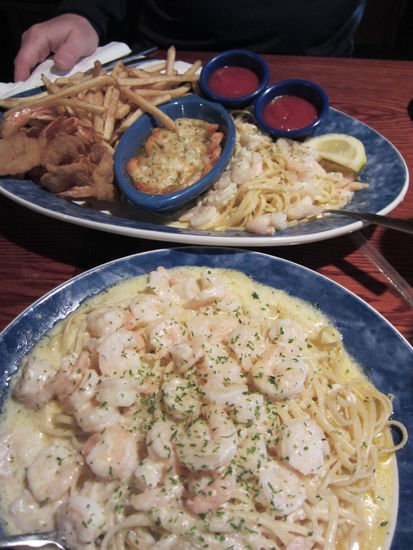 Danach fahren wir zum lang ersehnten Red Lobster, wo wir Nudeln mit Shrimps und Shrimps in verschiedener Form genießen. Das leckerste Essen der Welt!!! Leider sind unsere Mägen wieder zu klein, so dass wir uns die Reste - und einen Apfelkuchen für später - einpacken lassen. Zurück im Hotel schreibe ich den Reisebericht und Thomas trinkt einen Absacker an der Bar. Danach holt er mich ab und wir schlendern durch das Casino, das etwas außerhalb und nicht am Strip liegt. Irgendwie fehlt mir das "Spieler-Gen" vollständig. Jedenfalls reizt mich die Spielerei so überhaupt gar nicht. Wir riskieren ganze 3 $ an einem Jackpot-Automaten (versuchen muss man's ja mal) - und verlieren. Pech im Spiel - Glück in der Liebe!