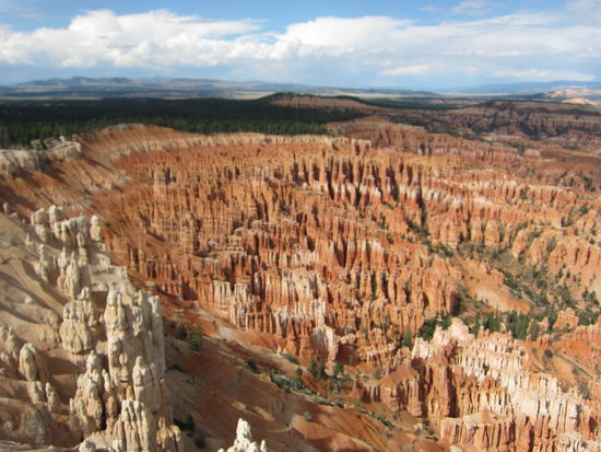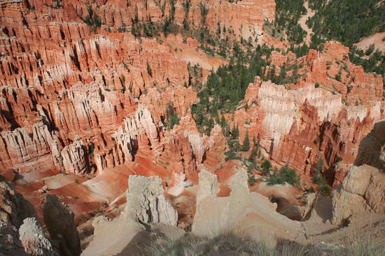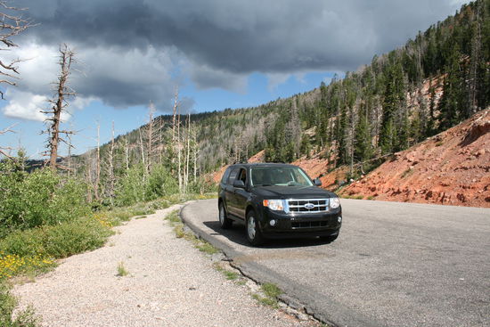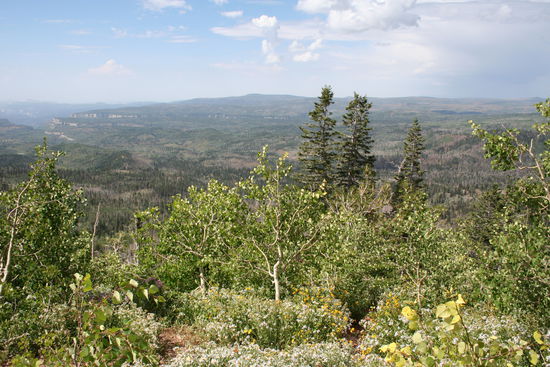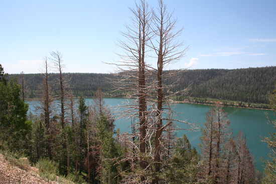 Auf der 15 geht es nach Norden, auf der 14 durch Cedar City - ein erstaunlich gepflegtes Städtchen - in den Dixie National Forrest. Die Straße entpuppt sich als wirklich schön! Immer höher bringt sie uns, schenkt uns einen wunderschönen Blick hinunter in die Ebene, führt uns am Navajo Lake, einem See vulkanischen Ursprungs, an Vulkangestein und schließlich an alpinen Wäldern und Wiesen vorbei. Zwischendurch sehen wir auch Rehe grasen.