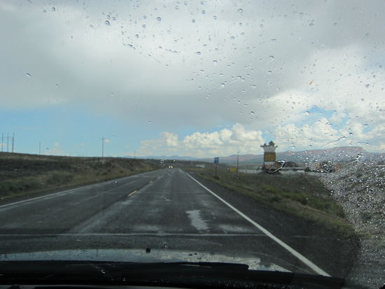 Sobald wir auf der 89 sind, stehen wir wieder wegen Straßenarbeiten im Stau, allerdings nur kurz. Als wir weiterfahren dürfen, holen uns die dunklen Wolken hinter uns ein und es beginnt zu regnen. Auf der 12 geht es schließlich zum Bryce Canyon. Dort geht gerade ein riesiges Gewitter runter. Es regnet wie aus Kübeln - so stark, dass wir beschließen mit dem Check-in noch zu warten, im Auto sitzen zu bleiben und unsere Sandwiches zu essen. Es regnet immernoch als wir schließlich unser Zimmer beziehen. Kühl ist es auch - 16 Grad - also kramen wir die warmen Sachen wieder aus den Tiefen unseres Autos - wir sind ja flexibel. Wir finden die Temperaturen zur Abwechslung nach den letzten Tagen sehr angenehm und der Regen stört uns auch nicht. Es klart auch schon wieder auf.