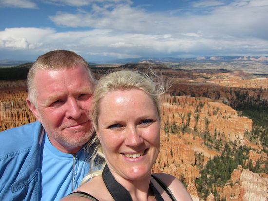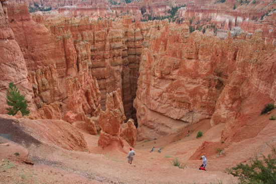 Gefühlte 500 Fotos und Filme später machen wir uns auf den Rückweg. Anscheinend sind hier nur Deutsche unterwegs. Wir kommen ins Gespräch mit einem älteren Ehepaar, bei dem direkt am 2. Tag ihres Urlaubs in Las Vegas auf dem RV-Parkplatz des Circus-Circus das Wohnmobil aufgebrochen und alle Wertgegenstände und Papiere (!) geklaut wurden. Sie hatten nur eine Kreditkarte und ein paar Dollar mit zum Pool genommen... Die beiden sind immernoch so entsetzt, dass sie am liebsten sofort nach Deutschland zurückfliegen würden, sie haben allerdings keine Flüge bekommen. Beim Konsulat in Las Vegas (gut zu wissen, dass es das dort gibt!) mussten sie über 300 € für Ersatzpässe zahlen. Die Freude am Urlaub ist bei ihnen weg, sie scheinen mit der Situation total überfordert, offensichtlich waren sie auch nicht ausreichend versichert, so dass sie den Schaden am Wohnmobil auch noch selbst bezahlen mussten... Selbst der Bryce Canyon kann sie nicht trösten.