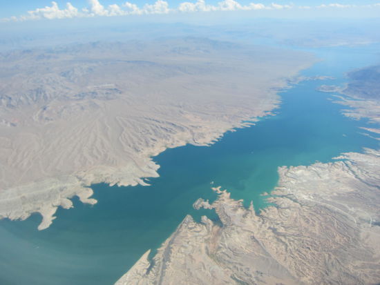 Ich schmeiße mir eine Schlaftablette ein. Zunächst denke ich sie wirkt nicht, weil ich eine Stunde später noch immer nicht eingeschlafen bin, doch dann nicke ich ein und werde erst 6 Stunden (!) später zum Abendessen wieder geweckt. Wir haben eine gute Sicht und sehen von oben Salt Lake City. Pünktlich um 15.00 landen wir in Las Vegas. Da wir ganz vorne sitzen, sind wir ruck zuck aus dem Flieger und ohne Probleme schnell durch die Imigration. Unsere Taschen sind auch (oh Wunder!) beide da.