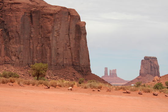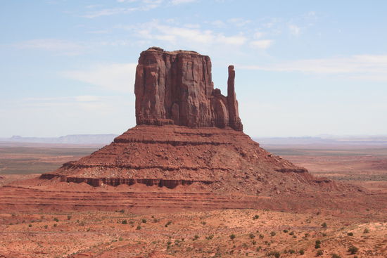 Nochmal tanken und einkaufen, dann fahren wir um 8.30 Uhr los. Auf der 191 geht es nach Süden. Dann biegen wir hinter Bluff (warum wohnt man hier...?) auf die 163. Wüste und rote bzw. gelbe Felsen wechseln sich ab. Am Mexican Hat halten wir kurz und machen ein obligatorisches Foto. Dann nochmal einen Stop, um die beeindruckende Straße mit dem Monument Valley als Hintergrund abzulichten.