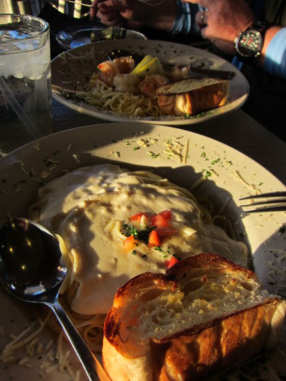 Unser Hotel ist schnell gefunden. Wir sind begeistert! Dabei ist es nur unwesentlich teurer als die Absteige in Moab... Im Zimmer machen wir es uns erst einmal gemütlich, dann gehen wir an den wunderschönen, kühlen Pool. Bei 35 Grad eine nette Abkühlung. Als uns der Hunger plagt, fahren wir in die Stadt und landen schließlich im DAM Grill+Bar, wo wir Pasta essen. Die Portionen sind relativ knapp bemessen, dafür sitzen wir schön im Freien auf der überdachten Terrasse; eine Seltenheit in den USA. An der Bar nehmen wir noch einen Absacker und fahren anschließend noch durch die Stadt, die sich sehr zum Positiven verändert hat. Für amerikanische Verhältnisse richtig gepflegt. Um 19.30 Uhr (jetzt Arizona Zeit!) sind es immernoch 33 Grad!