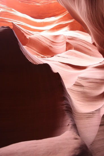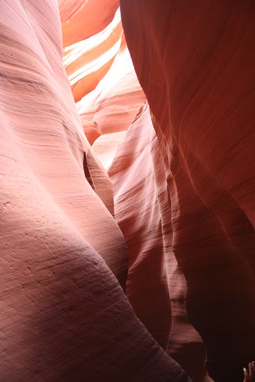 Nach unserem sonntäglichen Anruf in Deutschland (nach längerem Suchen haben wir endlich ein öffentliches Telefon am Safeway gefunden), starten wir zum Lower Antelope Canyon. Wir landen zunächst an der falschen Stelle, da der Lower Canyon von der 89 nicht ausgeschildert ist. Eine Navajo erklärt uns aber den Weg: man muss am Antelope Point (gegenüber vom Upper Canyon) einbiegen und ein paar 100 Meter fahren. Dann sieht man auch den Parkplatz - und die riesige Schlange am Kassenhäuschen. Jeder deutsche Arbeitnehmer bekommt beim Betrachten des Arbeitstempos des Navajos im Kassenhäuschen Herzrasen. Wir stehen mehr als ½ Stunde in der Schlange, weil mit jedem Touri zunächst eine längere Unterhaltung geführt wird und man seinen Namen und seine Adresse in eine Liste eintragen (wofür das?) und den Eintritt in Höhe von 20 $ plus 6 $ Permitgebühr (wofür das?) zahlen muss. Das dauert.... Einige Touris überlegen es sich wegen der Warterei schon anderes und fahren wieder weg.