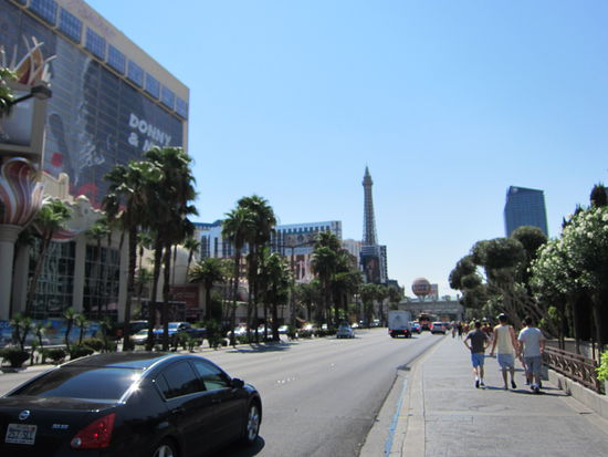 Danach versuchen wir einen Ausgang zum Strip zu finden, was gar nicht so einfach ist - die Casinobetreiber wollen dich einfach nicht rauslassen und minimieren die Anzahl der Ausgänge, so dass wir ewig durch das Casino-Labyrinth irren. Schließlich sind wir doch draußen und werden gleich von der Hitze erschlagen. Wieder sind es 40 Grad und der Weg am Strip entlang kommt mir unendlich weit vor. Ich jammer vor mich hin und bin mir sicher, dass der Weg zur Wave nicht so weit war. Thomas lacht und meint, dass dies hier doch nur ein entspannter Spaziergang sei. Mein Knöchel meint dazu was ganz anderes....