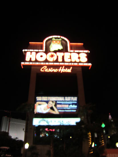 Nachdem wir nach endlosen Kilometern endlich unser Auto wieder erreichen, fahren wir ins Hotel, wo ich augenblicklich in einen tiefen, komatösen Schlaf falle. Die Hitze macht mich fertig. Wenn das Termometer über 35 Grad steigt, kann ich nur noch im Schatten sitzen und nichts tun, alles andere schafft mich... Als ich aufwache, hat Thomas immernoch Hummeln im Hintern. Er hat im Fernsehen eine Taco Bell Reklame gesehen und will jetzt unbedingt dorthin. Da er meint, im Outlet South einen Taco Bell gesehen zu haben, fahren wir dorthin. Dort ist aber keiner. Stattdessen kaufen wir beim Nike-Store eine Tasche als Mitbringsel, ein Basecap und eine Sweaterjacke. Dann fahren wir in den Crocks-Laden, erstehen dort je ein paar Schuhe (sehr bequem!) und fahren dann umher, immer noch auf der Suche nach einem Taco Bell. Aber Fehlanzeige. Weil auch ich inzwischen Hunger habe, laufen wir nach einem Kurz-Stop im Hotel zum Hooters, wo wir ein Steak-Sandwich und Chicken Wings essen und uns über die Amis wundern, die lautstark ein Rugby-Spiel an den dort überall hängenden Fernsehern verfolgen.