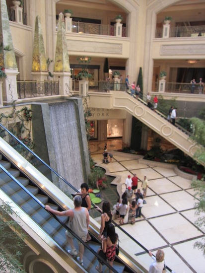 Nach dem Cosmopolitan landen wir in der Miracle Mile vom Planet Hollywood (nennt sich jetzt "PH"). Dort muss ich mich erst einmal hinsetzen und ausruhen, während Thomas noch eine Postkarte und was zu trinken kauft. Dann schlendern wir durch die Geschäfte, die hier nicht so teuer und abgehoben sind. Magisch werde ich wieder einmal von einer Foto-Galerie angezogen. Tolle Fotografien von Nationalparks werden dort ausgestellt und verkauft. Der Galerist nimmt sich Zeit für uns, obwohl er gleich sieht, dass wir uns die Kunstwerke (leider) nicht leisten können. Er erklärt uns die Fototechnik und führt uns vor, wie die Fotos die Optik verändern und regelrecht "strahlen", wenn man das Licht dimmt. Einfach phantastisch! Man hat das Gefühl, man erlebt den Sonnenuntergang im Antelope Canyon live mit. Leider kostet die Fotografie 3000 $ (inklusive Verschiffung und Lieferung nach Deutschland) - ein angemessener Preis - aber trotzdem leider unerschwinglich für uns. Ach würden wir doch noch im Lotto oder im Casino gewinnen....! Bei sowas haben wir aber leider nie Glück.