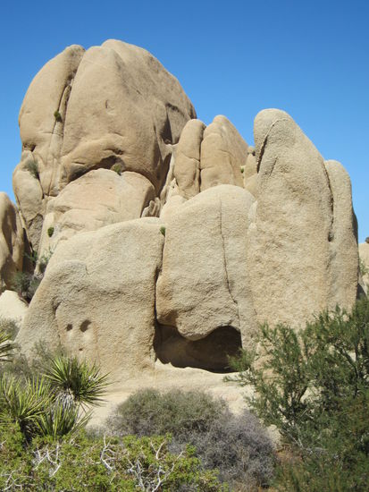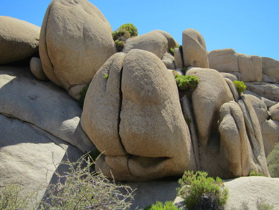 Wir fahren durch die Wüste zu den Jumbo Rocks. Ca. 15 Minuten krakseln wir durch die wunderschönen Steine und machen Fotos. Hier geht wenigstens ein heißer Wüstenwind. Wir beobachten Eichhörnchen, die unter den Steinen ihre Behausungen habe. Zum Picknicken ist es leider viel zu heiß. Unsere Sandwiches haben wir außerdem schon unterwegs gegessen.