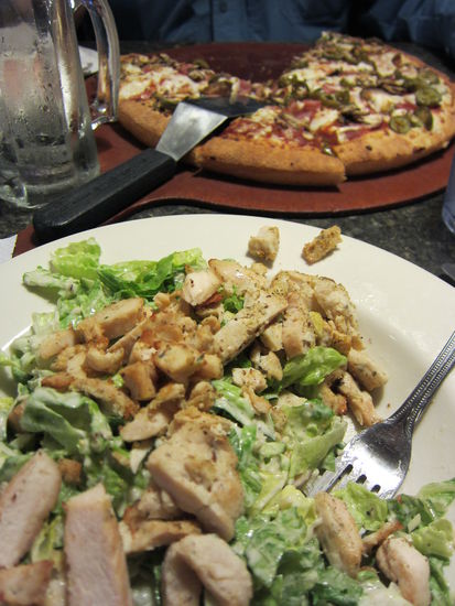 Der Pool ist pipi-warm und dreckig, also auch keine Erfrischung bei der Hitze. Hier sind es übrigens 43 Grad....! Wir schmilzen!!!! Abends suchen wir verzweifelt nach einem Restaurant. Alle uns bekannten Ketten sind in Indio, dahin wollen wir aber nicht noch mal zurück fahren. Das sind immerhin 20 Meilen. Also kurven wir durch Palm Springs, das aussieht wie eine Geisterstadt. Dabei hatten wir die Stadt in sooo schöner Erinnerung! Aber hier steht inzwischen jeder 3. Laden leer - die Wirtschaftskrise hat zugeschlagen -. Offensichtlich sind alle Leute, die es sich irgendwie leisten konnten, nach Indio gezogen - selbst die Ampeln quietschen verlassen im Wüstenwind. Ich bin wegen der Hitze und dem Jet Lack völlig fertig. Die Hitze ist nicht zum Aushalten. Die 2 einzigen verbliebenen Steakhäuser sind völlig überteuert und so landen wir schließlich im "Pizza-Hut". Inzwischen bin ich so platt, dass ich gar keinen Hunger mehr habe - und das kommt selten vor! Es gibt Knoblauch-Brot, Cesar's Salat und Pizza und ich esse fast nichts.