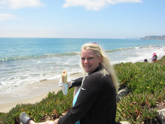 Zurück an Land gehen wir die State entlang und finden schließlich eine Sports-Bar, in der wir Burger und Sandwich essen. Wir sitzen direkt am Fenster und sehen den vorbeiziehenden Menschen zu. Anschließend gehen wir noch kurz zum Strand. Ich muss noch einmal meine Füße in dem eiskalten Pazifik baden.