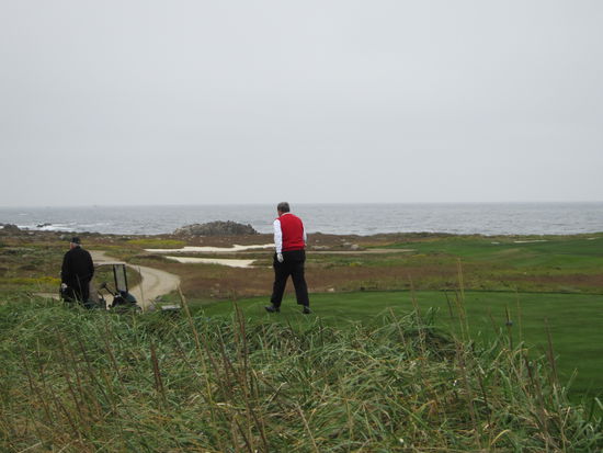 Auf kurvenreicher Strecke geht es durch Wald und an protzigen Häusern vorbei, die aber alle schon einmal bessere Zeiten gesehen haben. Auch hier zeigt sich die Wirtschaftskrise.... Leider ist es hier richtig kalt und wolkig (17 Grad), so dass wir am Meer mit Blick auf den Strand und dem angeblich teuersten Golfplatz der Erde richtig frieren - trotz langer Hose und Strickjacke.