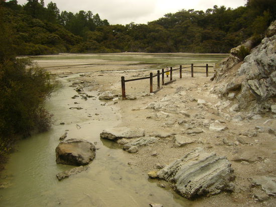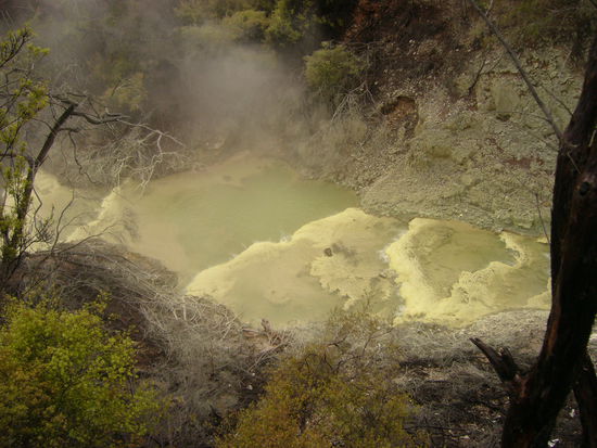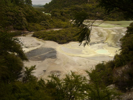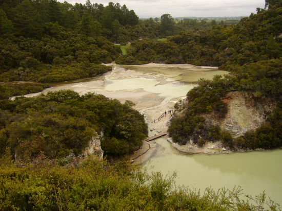 Nach Te Puia waren wir am selben Tag noch in einem weiteren Geothermie-Park mit dem Namen Wai-o-Tapu, in dem viele Quellen in den verschiedensten Farben zu bestaunen waren.