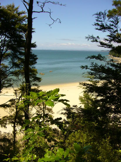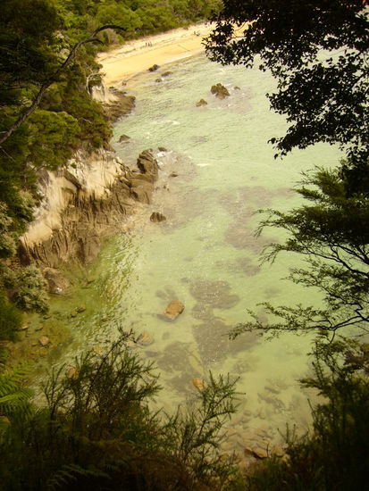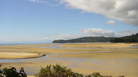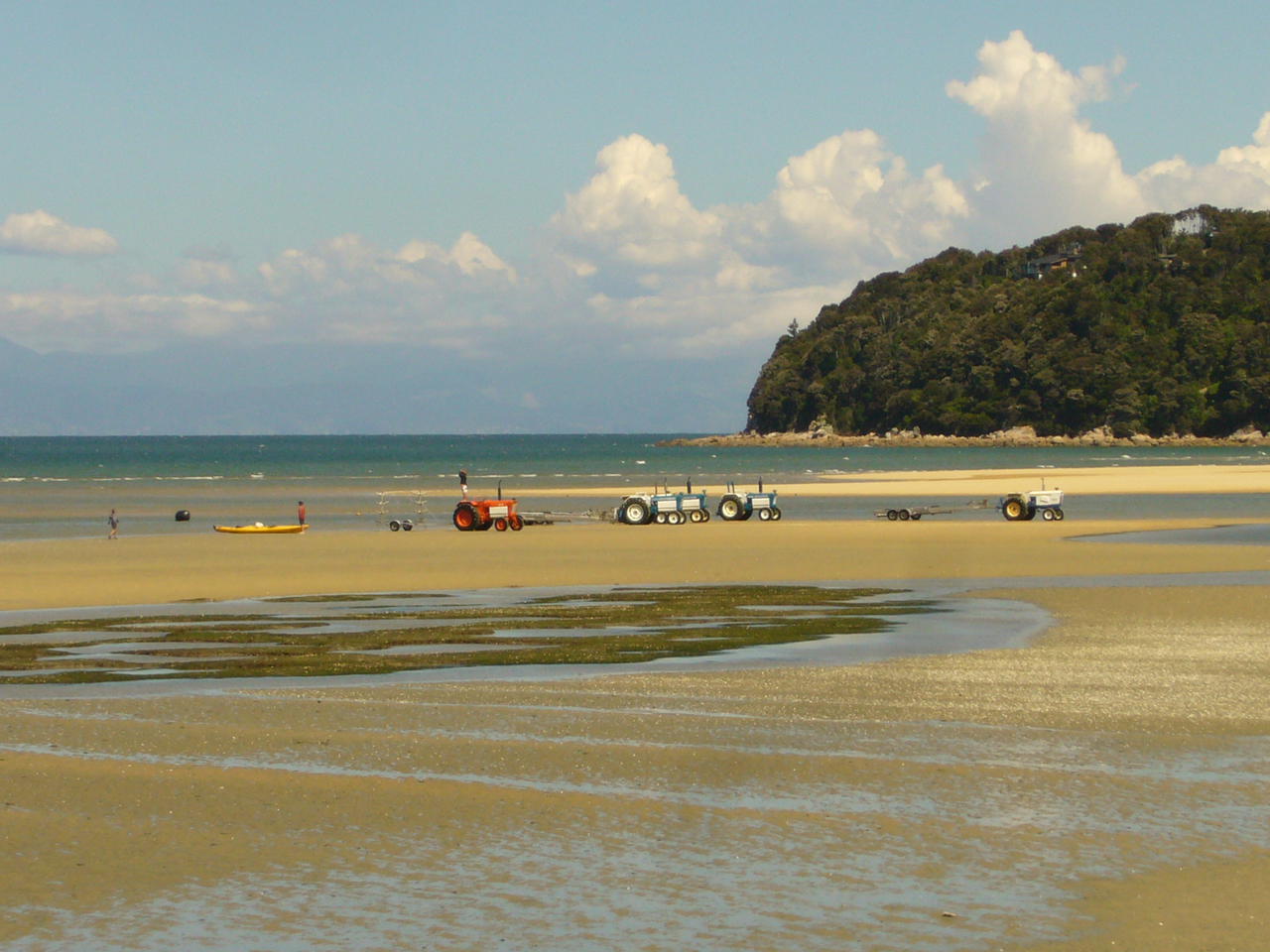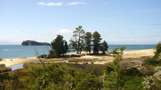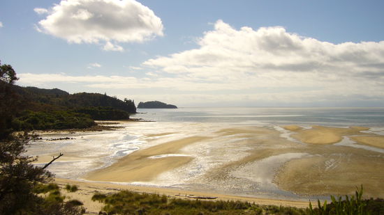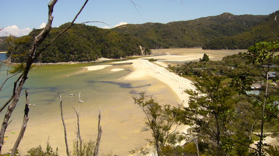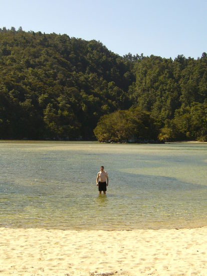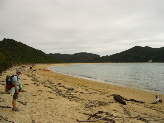 Eigentlich hatten wir eine 2 1/2 taegige Wanderung auf dem Abel Tasman Coast Track (benannt nach Abel Tasman, einem der ersten Europaeer, die in NZ waren) geplant. Aufgrund der Unwetter in der Vorwoche, die in dieser Region besonders heftig ausgefallen sind, hat es leider einen Teil des Wegs weggespuelt und wir mussten um einen Tag verkuerzen. War aber trotzdem super, wie ihr gleich sehen werdet...