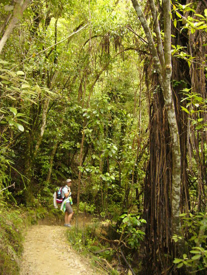 Auf Haengebruecken steht Manu voll. Ich bin dann erst auf die Bruecke gegangen, nachdem Manu drueben war - damit's net so wackelt...