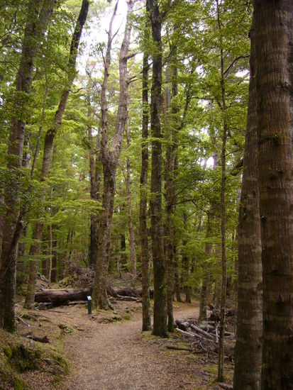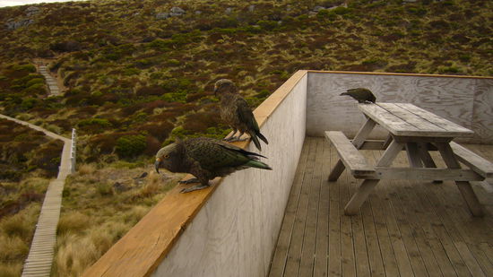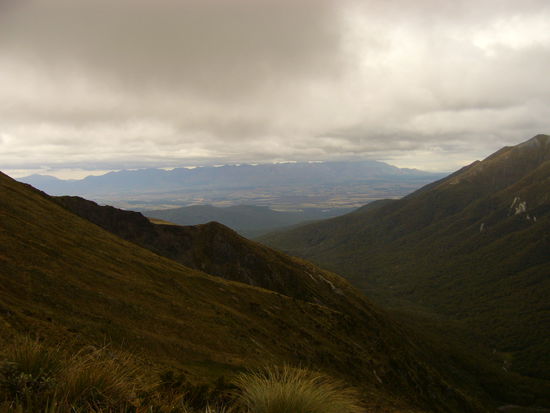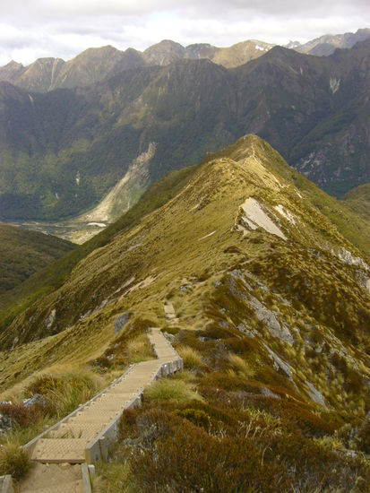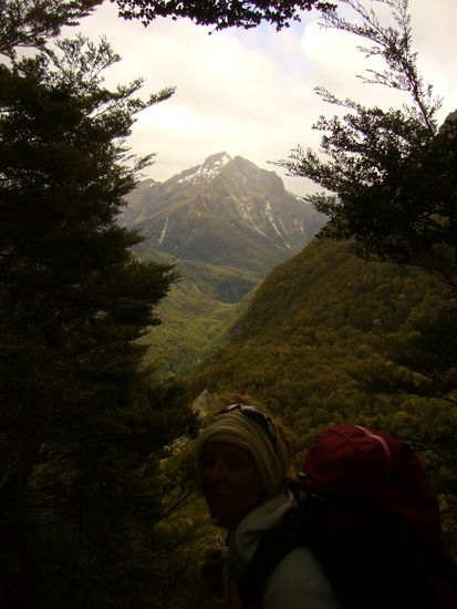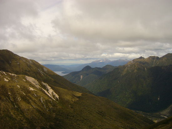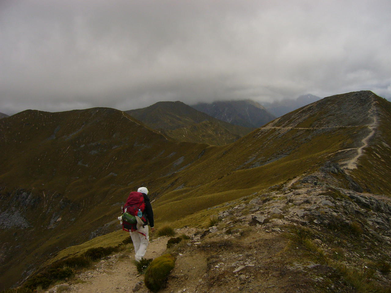 Am 2. Tag geht's dann auf den Graten zwischen Berggipfeln erst nochmal weitere 200 Hoehenmeter rauf, bevor der Abstieg zur 2. Huette beginnt. endlich wieder im Wald ist zwar der Wind weg, dafuer gibt's hier aber Millionen von Sandflies. Blutsauger wie diese gibt's sonst nur beim Finanzamt!