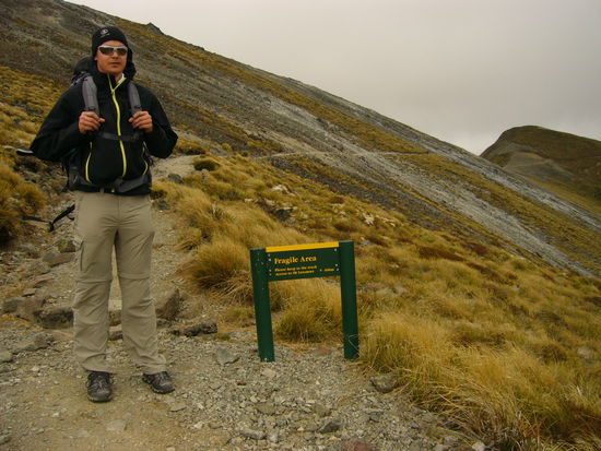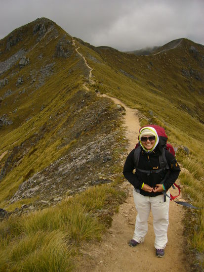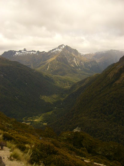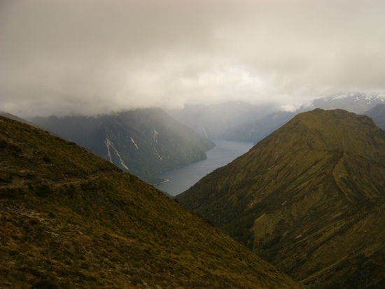 Den kleinen Umweg ueber den Gipfel des Mt Luxmore habe ich mir nicht nehmen lassen, auch wenn das Wetter leicht wanderfeindlich und der Weg ziemlich steinig war.