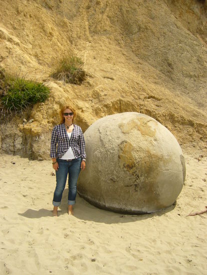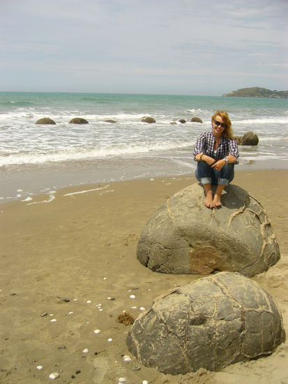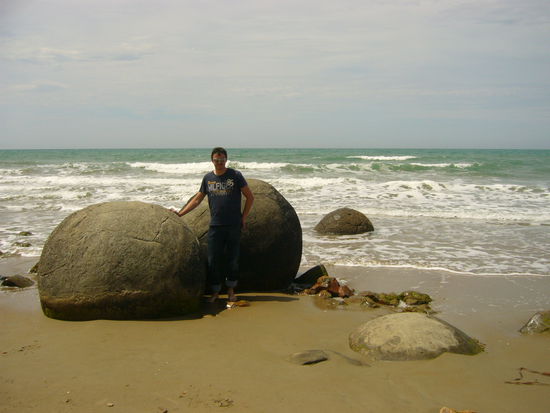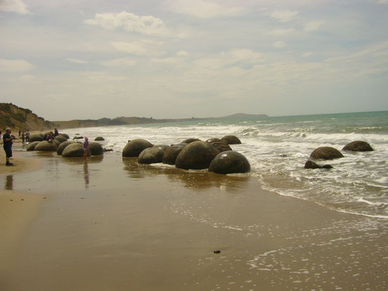 Auf dem Weg von Dunedin nach Christchurch haben wir uns auch die Moeraki Boulders angesehen. Nach Legenden der Maori waren diese Steinformationen Behälter für Lebensmittel, die von dem großen Kanu stammen, mit welchem die ersten Maori nach Neuseeland gekommen sind.