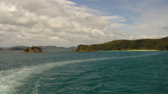 In Paihia haben wir einen Tagestrip auf einem Boot durch die Bay of Islands gemacht - 144 Inseln mit wunderschoenen Buchten und Haeusern, die teilweise in Privatbesitz sind.