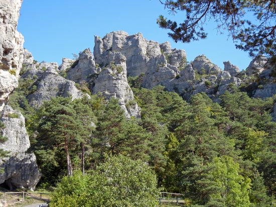 Die ausgedehnten Kalkplateaus im Süden des Zentralmassivs bilden eine der eigentümlichsten Gegenden Frankreichs. Im Osten werden sie von den Cevennen und im Norden vom Lot-Tal begrenzt. Der Kalkstein verleiht der Landschaft - karge Hochplateaus, gigantische Canyon und natürliche Klüfte - ein markantes Aussehen. Die wenigen Häusern in den kleinen Weilern bestehen aus weißen Trockenmauerwerk, was ihnen ein raues Aussehen verleiht. Der Kalkstein, der den Regen wie ein Schwamm aufsaugt, verursacht die Trockenheit der Böden, doch unter dieser ausgedörrten Erdoberfläche verbirgt sich eine reiche Höhlenwelt. Auf den Hochplateaus gibt es heiße, trockene Sommer und strenge Winter mit lang anhaltenden Schneefällen und heftigen Winden. Die Causses sind schon immer ein bevorzugtes Gebiet für die Haltung von Schafen gewesen, die sich mit der kargen Vegetation zufrieden geben. Kleine Teiche - La-vognes - dienen als Tränke für das Vieh. Der Untergrund wird durch eine Tonschicht oder Pflastersteine wasserundurchlässig gemacht.