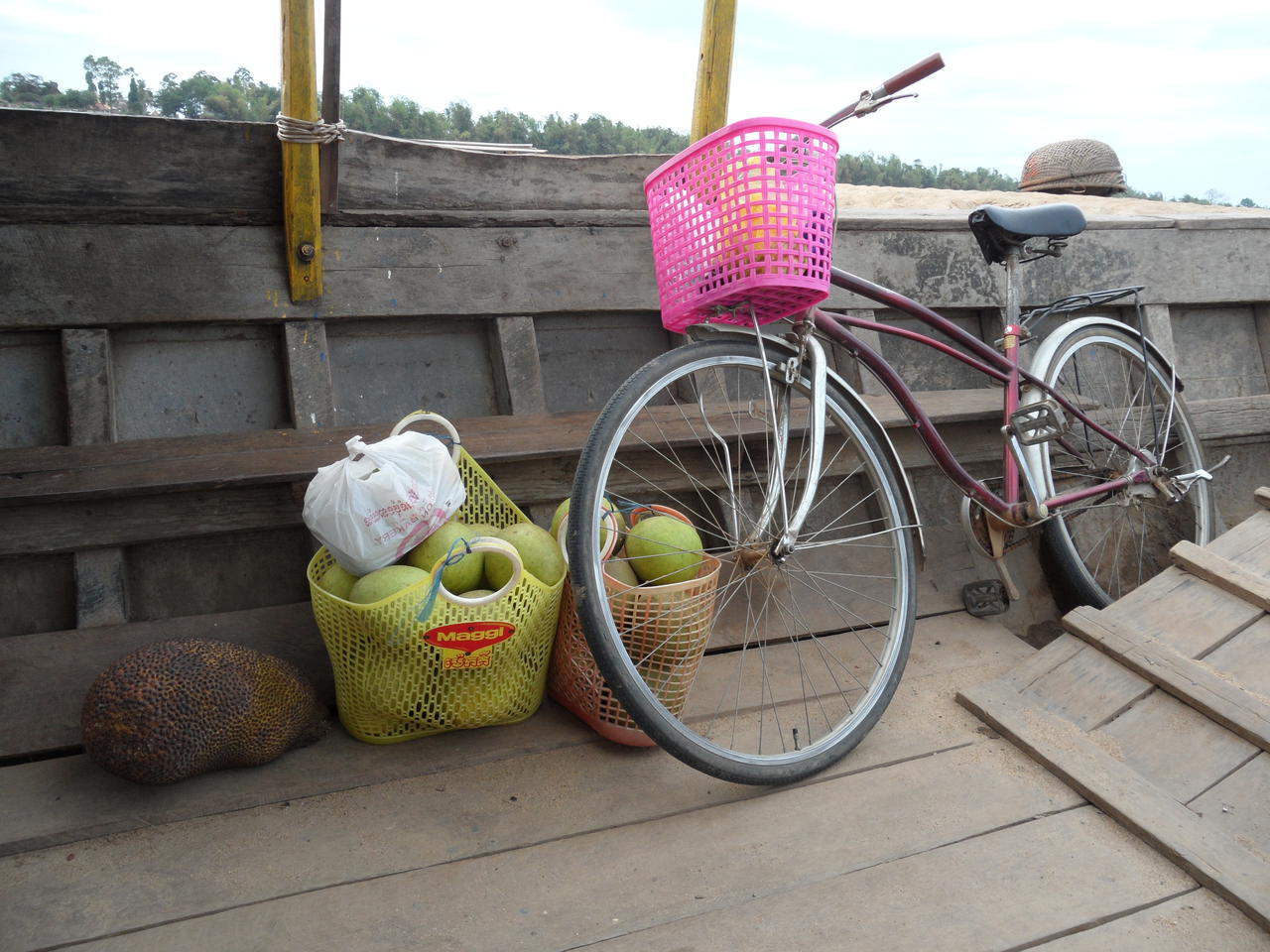In Kratie hab ich mir dann ein Fahrrad ausgeliehen und bin dann mit der Faehre rueber zur Insel. Kratie liegt am Mekong und auch hier gibt es einige groessere und bewohnte Inseln - keine Ahnung wie meine hiess, aber sie war auch jeden Fall sehr schoen. Ich hatte eine ganz entspannte Zeit, hab eine gemuetliche Inseltour gemacht (ca. 10 km) und mich ueber die Leute gefreut! Die waren naemlich ausgesprochen nett! Egal ob alt oder jung, sie haben immer Hallo gerufen wenn ich vorbeifuhr und gewunken und sich riesig gefreut, wenn ich zuruckgegruesst und gewunken habe. Das hat eine so schoen Stimmung erzeugt, dass ich die ganze Zeit mit einem breiten Grinsen gefahren bin. Mir wurde dann auch klar, dass das fuer die naechste Zeit die letzte ruhige und entspannte Zeit sein wuerde und ich hatte fast etwas Wehmut.