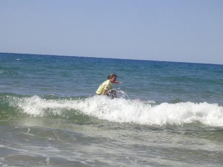 Dann erfahren wir, dass um 10 Uhr ein Surfkurs beginnt. Yeah, genau das was wir heute vielleicht sowieso gemacht haetten.