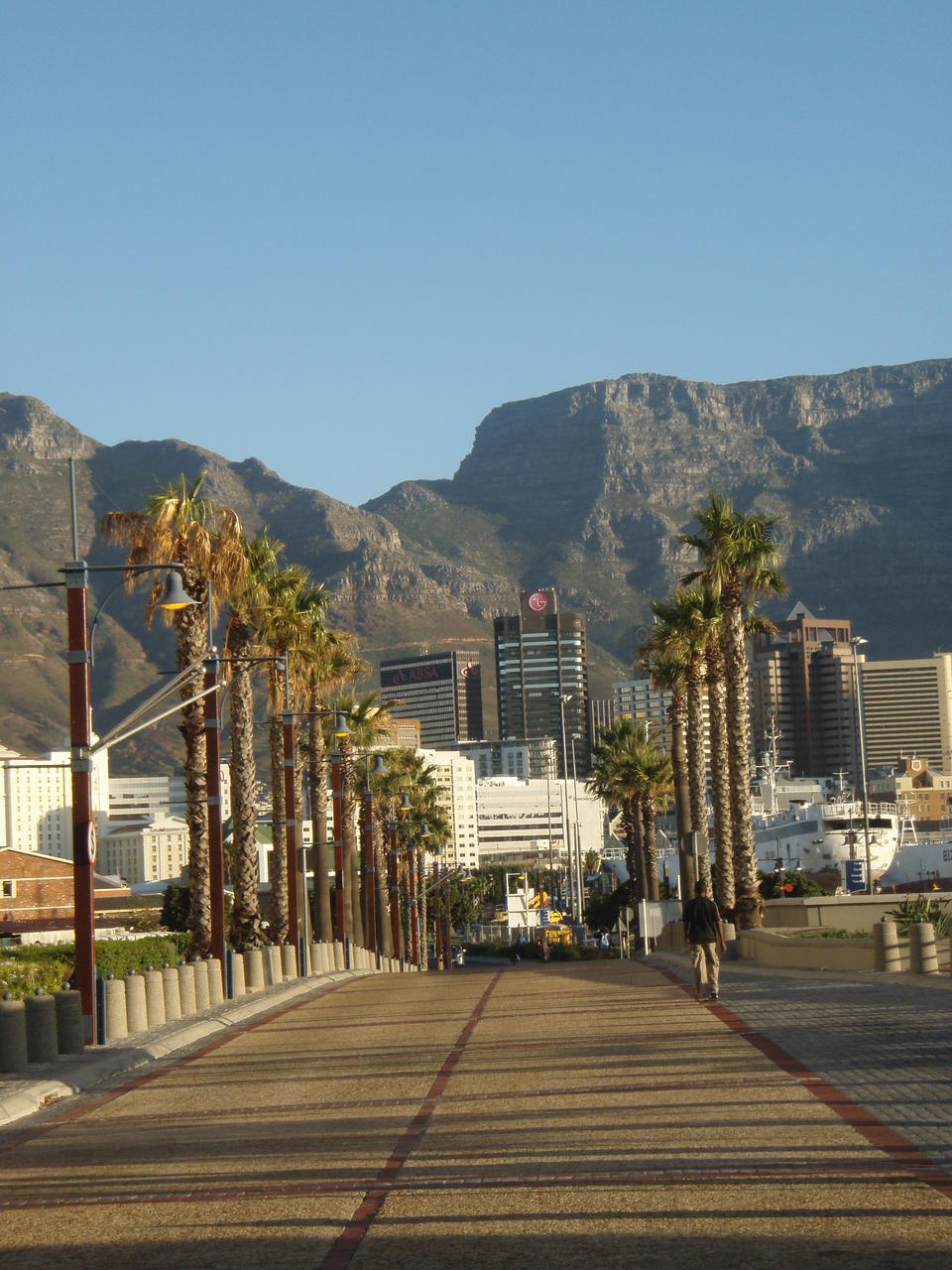 Und es ist auch schön, im Wasser immer wieder die spielenden Robben zu sehen, den Schiffen zuzuschauen, wie sie zu ihren Sundowner-Cruises auslaufen und als Geräuschkulisse den afrikanischen Gesang zu hören, den einen an jeder Ecke erwartet, wenn wieder eine Gruppe in bunten Gewändern dasteht und singt. Und nicht zuletzt die vielen tollen Restaurants, in denen man den leckeren südafrikanischen Wein genießen und das ständige Treiben auf den Wegen beobachten kann.
