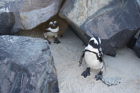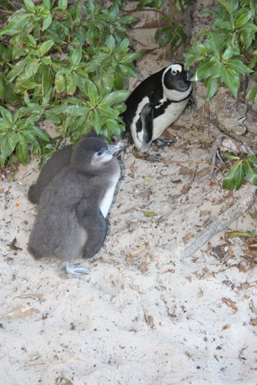 Nachdem wir noch ein wenig kreuz und quer durch den Park gefahren waren, machten wir uns auf den Weg nach Simon's Town zu den Pinguinen. Seitdem ich diese putzigen Viecher beim letzten Südafrika-Urlaub das erste Mal in natura gesehen hatte, bin ich ganz verliebt in sie. Sie sehen nicht nur süß und etwas tollpatschig aus, sie sind auch erstaunlich gut im Klettern. Und die Jungen mit ihrem flauschigen Gefieder sehen einfach nur zum Knuddeln aus! Man kann auch bis auf etwa einen Meter an sie ran, teilweise kommen sie sogar selbst so nah zu einem, wenn es sich um ein ganz neugieriges Exemplar handelt. Aber trotzdem gilt: NICHT anfassen!