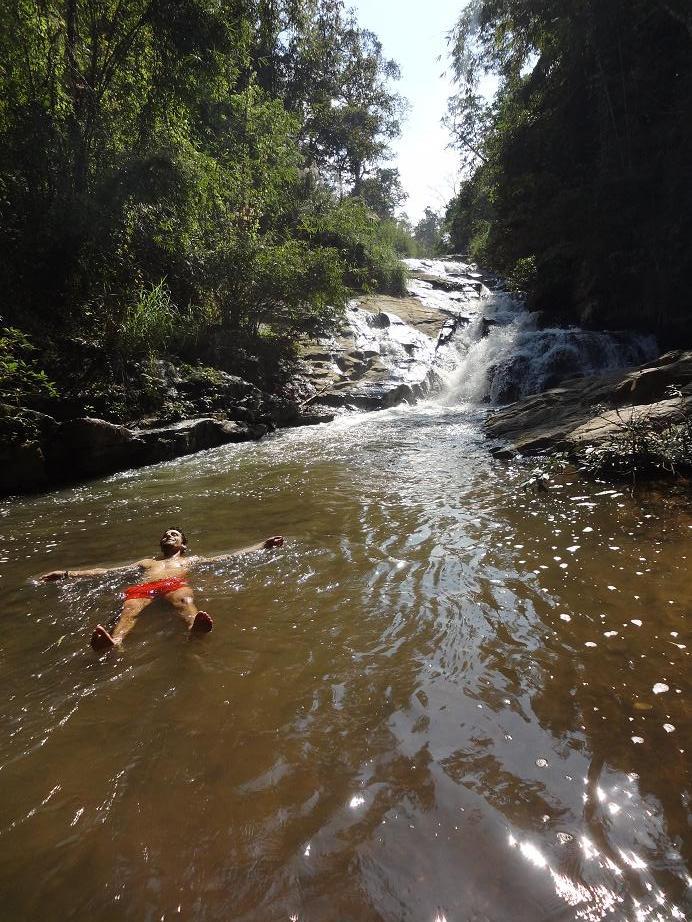 Heute stand eine Wanderung auf unserem Programm. Da wir auf Elefanten reiten und raften sowie Berdoerfer besuchen verzichten wollten buchten wir eine Wanderung durch den Jungle. Wir waren eine supertolle Gruppe von zwei Koreanerinnen, ein Amerikaner und zwei Franzosen. Auf Trampelpfaden ging es durch den dichten Wald und immer weiter Bergauf. Als wir an einem Wasserfall ankamen, machten wir eine kleine Schwimmpause und bekamen etwas zu essen. Der Platz war wunderschoen und das Essen schmeckte hervorragend. Wir genossen die Aussicht, die ruhe und die Abkuehlung im Wasserfallbecken. Danach ging es weiter zu einer Fledermaushoele. Dort Schliefen Tausende Fledermaeuse. Unser Fuerer weckte einige von ihnen und so flogen diese durch die Hoele. Das war ein unvergaeslicher Moment. Nach ca 5Stunden Marsch, wurden wir mit dem Minibus wider abgeholt.