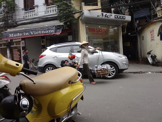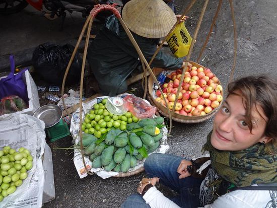 Es war ein kalter Tag(15 Grad) und es regnete. Nicolas uralte Schuhe waren nicht mehr dicht. So gingen wir ihn schoene blaube Convers Schuhe kaufe. Das muss erwaehnt warden, weil es das erste und vielleicht das letzte Mal war, dass er sich was kaufe. Danach besuchten wir die erste Universitaet Vietnams. Nicola war von allem beeidruckt in Hanoi und fand es schad, dass wir schon bald wieder weiter gehen mussten. Doch nach diesem Besuch hatten wir scho fast alles gsehen und liefen nur noch im grossen Markt und in der Stadt herum bis wir unser Gepaeck holen mussten und zum Bahnhof gingen. Auf halben Weg (1km) merkte Nicola, dass er den Reisefuehrer liegen gelassen hat ( Ja....das ist eine Familienkrankheit). Fuer ihn hatte es sich gelohnt, denn er konnte endlich mal ein Motorradtaxi fahren=)