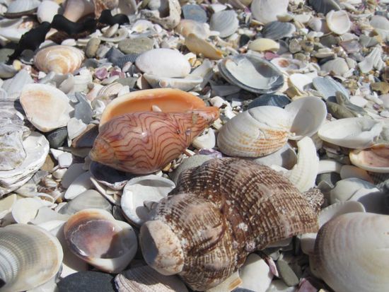 Am Weg liegt noch der Shell Beach, wo durch die Strömungsverhältnisse ungewöhnlich Mengen an Muscheln aller Art zu finden sind.
