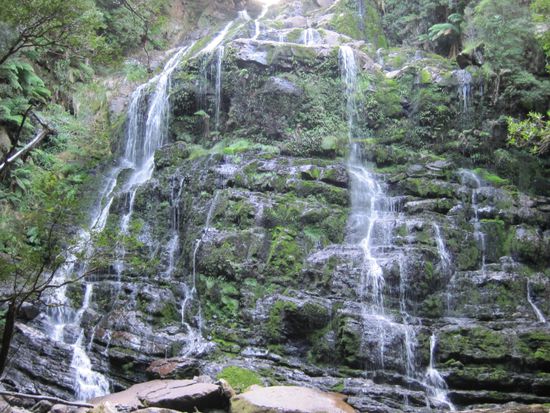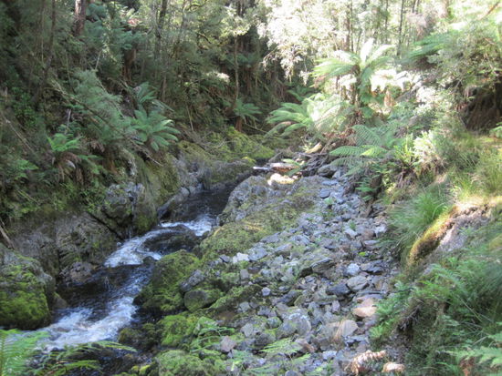 Zunächst musste ich bis Queenstown dem Hinweg folgen, dann ging es wieder auf einer "ordentlichen Straße" weiter Richtung Osten. Die Straße streift den Gordon Franklin National Park, hier waren die Nelson Falls einen Abstecher wert.