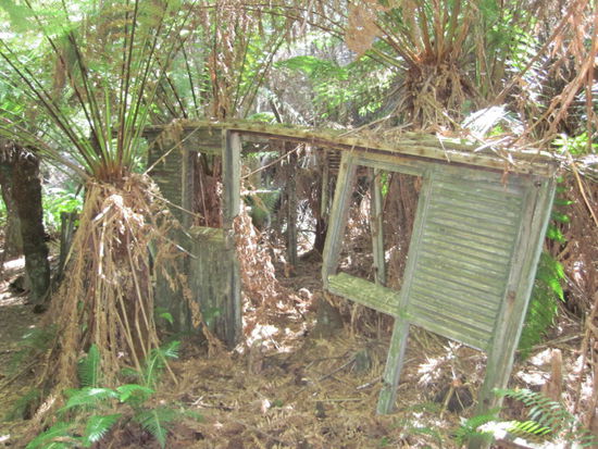 Auch ganze Eisenbahnwagen sind im Busch vergessen worden und werden nun von den allgegenwärtigen Baumfarnen "dekoriert".
