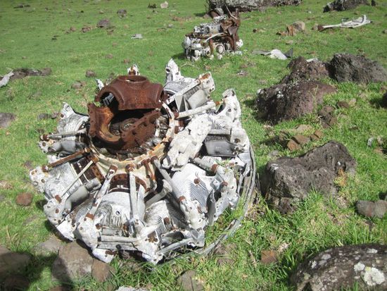 Dann geht es zum Ende der Straße am Old Settlement Beach. Ein Weg quer über eine Viehweide führt zu den Resten eine Flugboots, das hier vor 70 Jahren verunglückt ist.