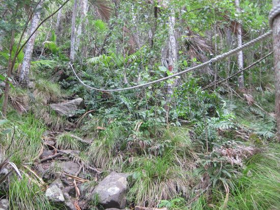Eine schöne Wandertour "in die Berge" führt zur "Goat Cove". Erst geht es recht gemütlich über den Bergrücken, dann wird der Weg immer steiler, hier sind Seile hilfreich.