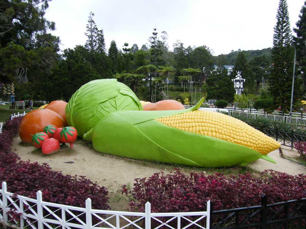 allerdings riechen die Matratzen ziemlich muffelig. Sonst ist die Hütte wirklich ok. Dann also los zur Ortsbesichtigung. In diesem Fall ist man da in 30 Minuten durch, kleiner gemütlicher Hochlandort, aber hier soll in der Saison die Hölle los sein. Tausende Touranbieter, aber wir wollten nur einen Plan von dem Ort, also die Touri Info heimgesucht und für 4 Ringit einen aktuellen Ortsplan erstanden, ab ins Cafe und das Dingen studieren. Eine längere Wanderung war nicht mehr drin, also nur die Kurzstrecke. Den Gemüsegarten haben wir nicht gefunden, aber etwas ähnliches. Bis zu diesem Zeitpunkt hatten wir strahlenden